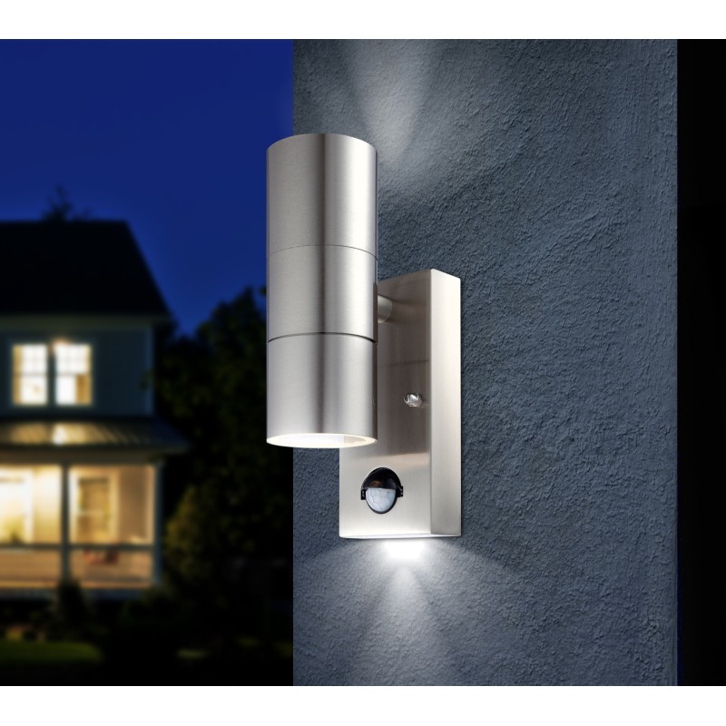 Globo 3201SL kültéri fali lámpa Style mozgásérzékelővel 1x5W | GU10 LED | 210lm | 3000K | IP44 - izzóval, rozsdamentes acél